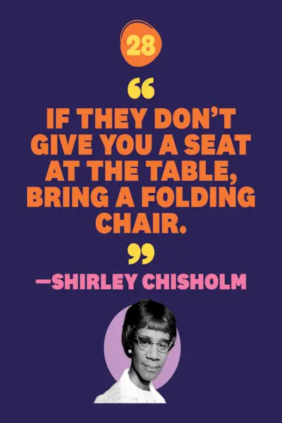 28. Si no te dan un asiento en la mesa, trae una silla plegable. —Shirley Chisholm