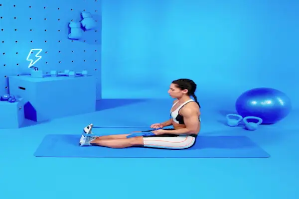 Cómo: Siéntate derecho y coloca las puntas de tu pie derecho en el lazo de una correa o banda de resistencia. Flexione los pies apuntando los dedos hacia el pecho. Después de unos segundos, relájese apuntando los dedos de los pies en dirección contraria al cuerpo. Esa es una repetición. Continúe durante 30 a 60 segundos.